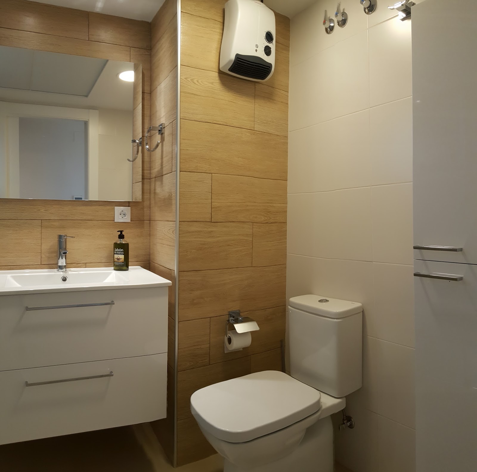 En el baño dos sí que hizo falta ingenio para convertir un mini-baño incomodo en un baño funcional y práctico con una ducha suficientemente cómoda.